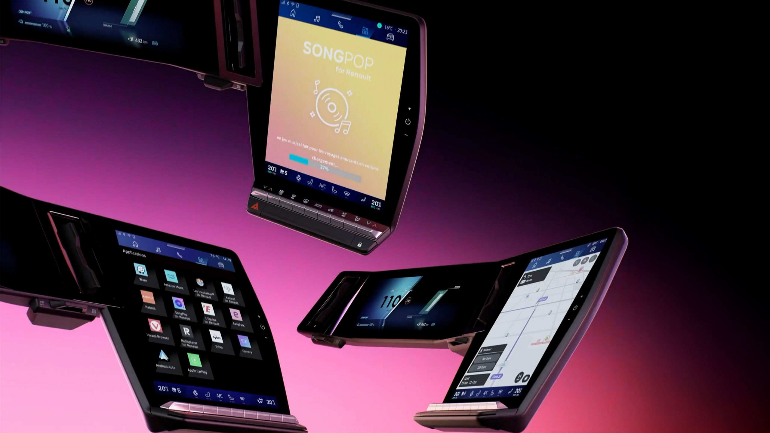 With openR link, the screen gives you a complete digital ecosystem: real-timeGoogle navigation, voice control, and more than 100 apps to guide, inform and entertain. It simplifies every journey and enriches the experience. On selected models, reno, Renault‘s digital avatar, answers your questions via ChatGPT.
